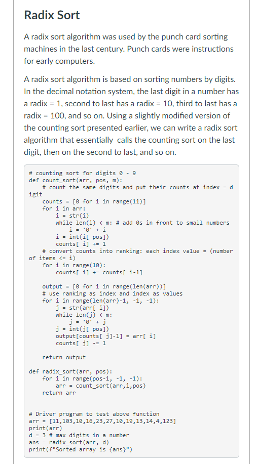 Solved Counting Sort For Digits 0 9 Def Count Sort Arr Chegg Com
